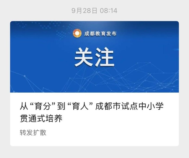 这些消息从何而来?封面新闻记者翻阅相关视频和网帖后发现,无一例外描述的都是近期成都市教育局公布的一项改革——自2025年起,探索开展小-初-高12年贯通式培养改革试点。