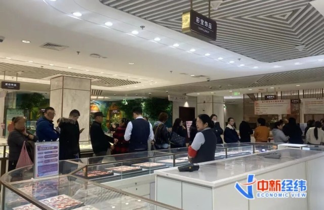23日,中新经纬以投资者的身份走访菜百发现,首饰柜台顾客较少,但投资金条柜台围满了人。同时,黄金回购柜台也排起了长队。