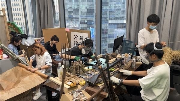 “名侦探小宇”团队正在制作道具。受访者供图