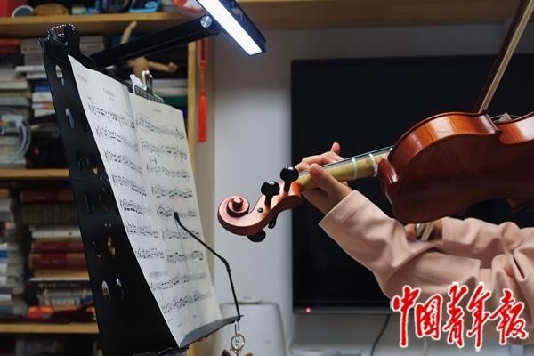 11月8日,王飞停了女儿的小提琴课,女儿仍在家里练习。中青报·中青网记者 杜佳冰/摄