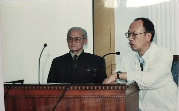 讲课中的王祖承与刘贻德教授(2000年) 图片由受访者提供