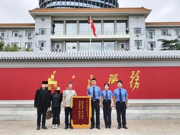 调解结束后,物业公司代表为北京市大兴区人民检察院送锦旗。受访者供图