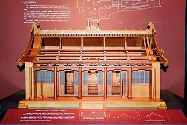 小西天大雄宝殿1∶10半剖面实木模型。中国典籍博物馆供图