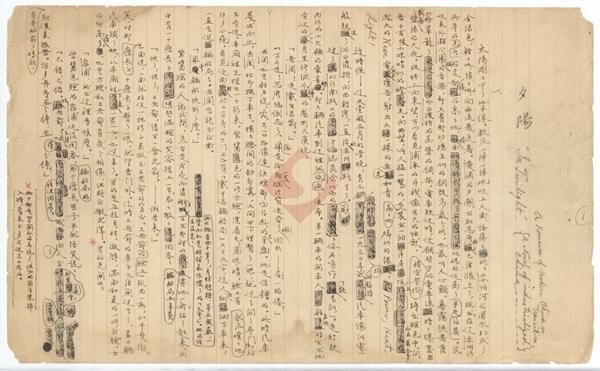手稿的文本细节进一步印证了作者的革命立场,如茅盾原将吴荪甫的座驾设定为“福特”,后改为象征资本特权的“雪铁龙”,以此强化人物阶级属性。此外,手稿中反复推敲的英文副标题“The Twilight:A Romance of China in 1930”(夕阳:发生在1930年的中国罗曼史),暗含对帝国主义经济侵略的批判,而最终定稿删除这一表述,转而聚焦本土化的革命叙事,体现了茅盾从国际视野向本土话语的策略调整。