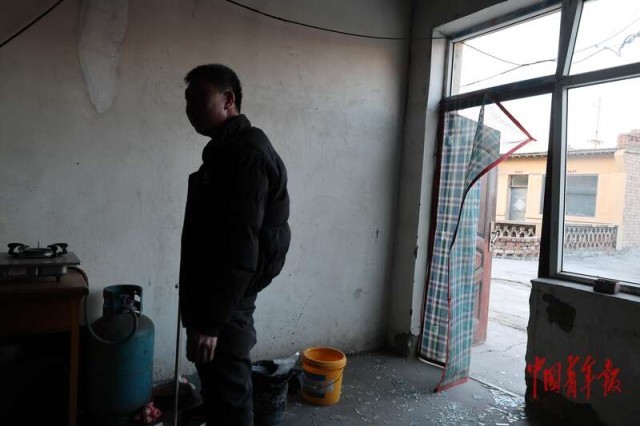 1月20日,内蒙古包头,九原区尔甲亥村,记者观察到村内多处房屋的玻璃被震碎,有些房屋无人居住,有些玻璃被村民用木板、铁架等物品“修补”空隙。中青报·中青网记者 石佳/摄