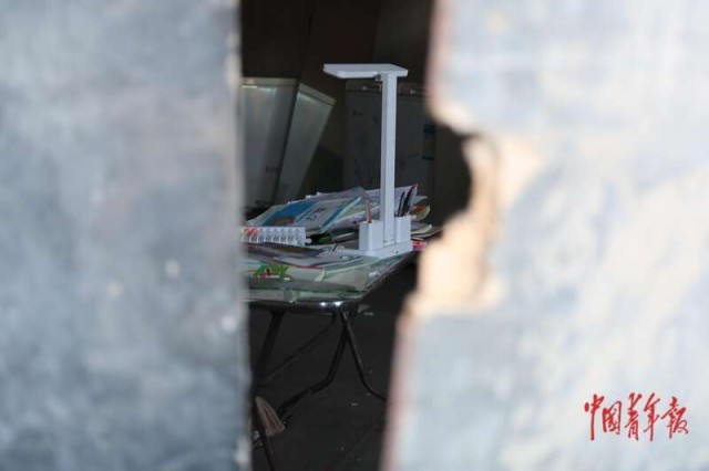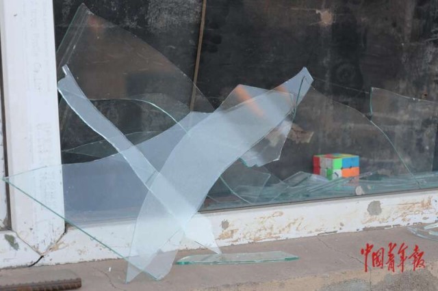 1月20日,内蒙古包头,九原区尔甲亥村,在大片的玻璃碎片中能看到屋内的魔方玩具。中青报·中青网记者 石佳/摄