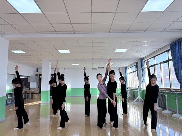 会宁职业中等专业学校梦芽舞蹈社团里,牟文文老师在指导学生的舞蹈动作。受访者供图