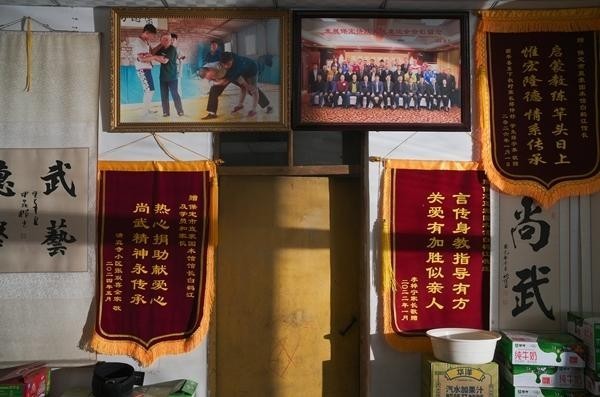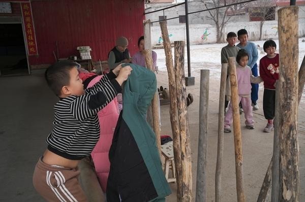 1月18日,河北省保定市南沟头村,一名男孩在训练之前将外套挂好。孩子们在武馆里朝夕相处,养成了坚韧独立、团结互助的品格。