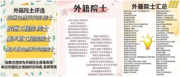 中介在社交媒体的宣传信息,数十家科学院可供申报外籍院士。来自中介社交媒体