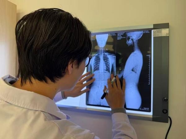 2023年,上初三的徐天勤正值快速生长期,从小排队都站第一个的他开始猛长个头。“某天他写作业时,我从背后看到他低头时颈椎骨节明显不在一条直线,再看腰椎也有点歪,赶紧带他去了医院。”徐天勤的妈妈说,检查显示孩子脊柱侧弯12度,被诊断为轻度脊柱侧弯。
