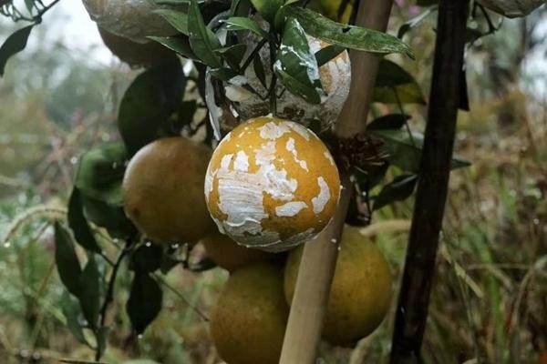 抹石灰防虫的脐橙。受访者供图