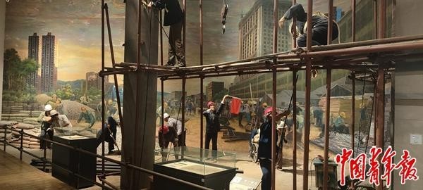 工作人员甚至直接在馆内建了个“工地”。
