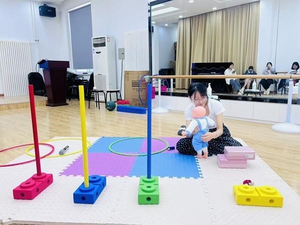 婴幼儿托育服务与管理专业的学生在进行实训。张晗/摄