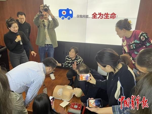 2025年3月31日,北京一家单位的职工在接受专业急救医生的心肺复苏培训。中青报·中青网记者 李新玲/摄