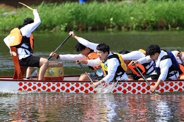 2025年6月15日,“2025年北京良乡大学城龙舟邀请赛”在北京房山区刺猬河水域举办。北京科技大学龙舟队在比赛中。视觉中国供图(资料图片)