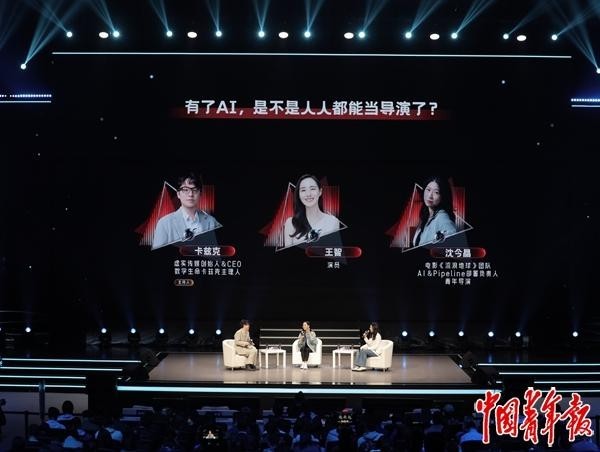 4月9日,北京亦庄,《流浪地球》团队AI&Pipeline部署负责人、青年导演沈今晶与演员王智、知名AI自媒体博主卡兹克探讨“有了AI,是不是人人都能当导演了”。