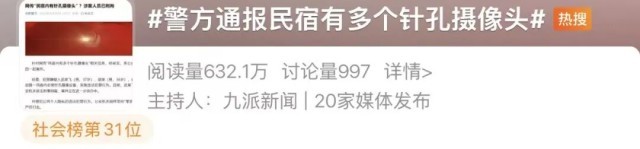 针对网传“民宿内有多个针孔摄像头”相关信息,经核实,系公安机关正在侦办的一起案件。