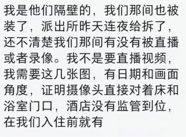 博主表示,在考试期间,一房间有四五位女学生入住,其在房间排练的情形被直播,但对于这几位学生更衣时隐私是否被泄露,他表示暂不明。