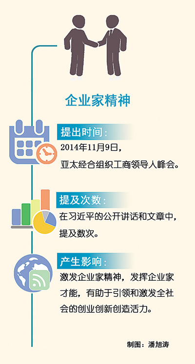 “我们全面深化改革,就要激发市场蕴藏的活力。市场活力来自于人,特别是来自于企业家,来自于企业家精神。”2014年11月9日,在亚太经合组织工商领导人峰会上,面对来自数十个国家和地区的1500多位工商界代表,国家主席习近平特别提及了企业家精神。