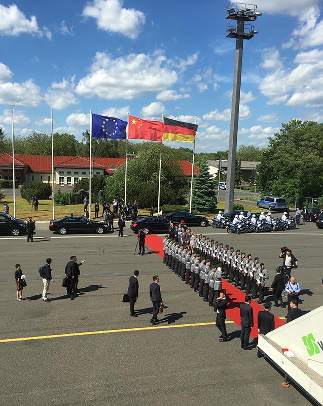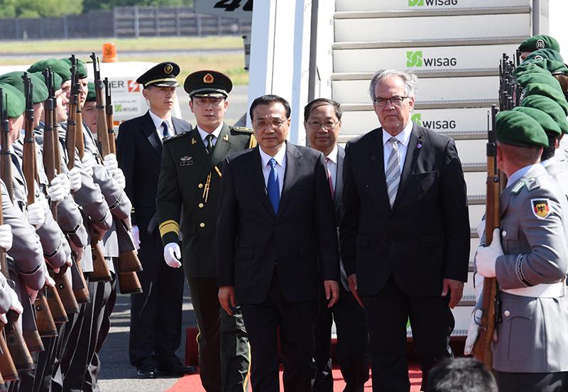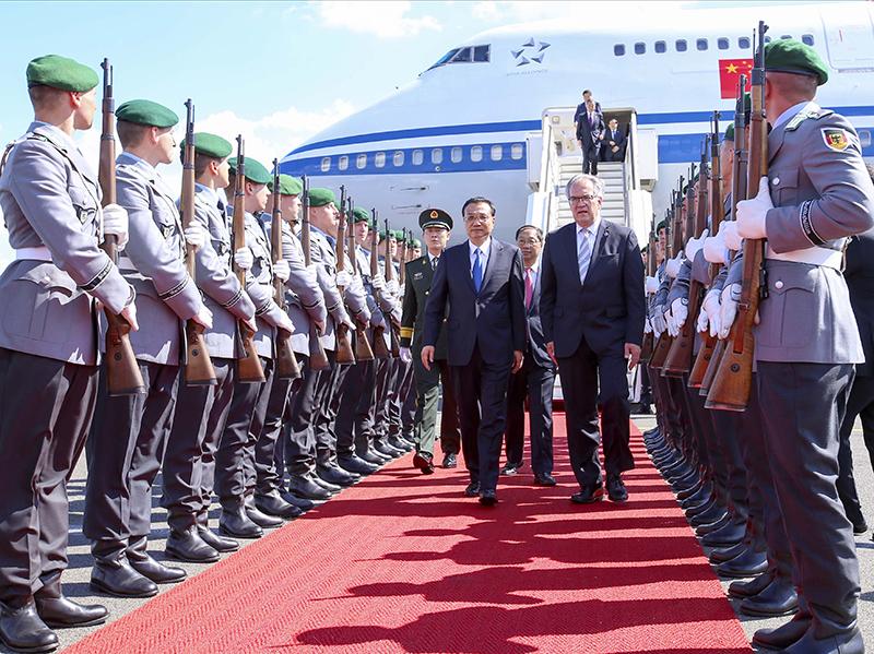 李克强总理当地时间31日下午乘专机抵达柏林,开始对德国进行正式访问,并举行中德总理年度会晤。德政府高级官员在舷梯旁盛情迎候,礼兵沿红毯两侧列队欢迎。访问期间,李克强将同德总理默克尔举行多场会晤并会见德总统。两国总理还将共同出席多场经贸、人文活动。