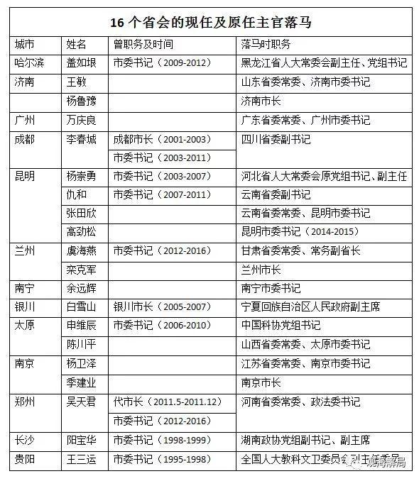 看法新闻记者梳理发现,十八大以来,包括兰州在内,已至少有16个省会城市的现任及原任主政官员落马,涉案的市委书记、市长达到23人。具体如下: