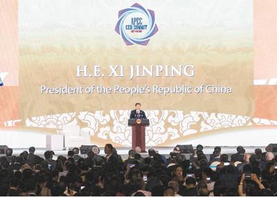 2017年11月10日,国家主席习近平应邀出席在越南岘港举行的亚太经合组织工商领导人峰会并发表题为《抓住世界经济转型机遇谋求亚太更大发展》的主旨演讲。 新华社记者 王晔 摄