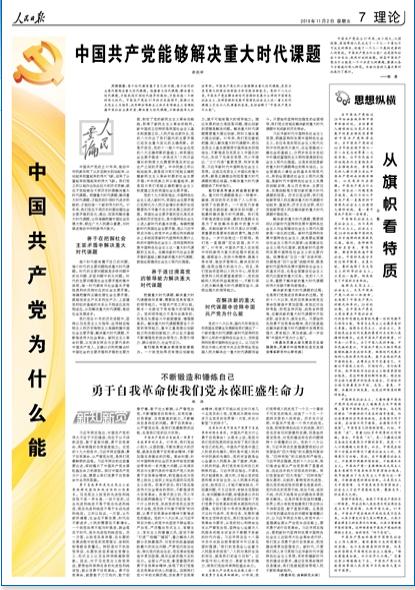 中国共产党成立97年来,由小到大,从弱到强,团结带领人民攻克了一个又一个看似不可攻克的难关,创造了一个又一个彪炳史册的人间奇迹。中国共产党为什么能?这是国际社会十分关注、热烈讨论的话题。回答中国共产党为什么能是一个十分宏大的课题,需要从各个方面进行深入研究。本版刊登的几篇文章对此进行了探讨。