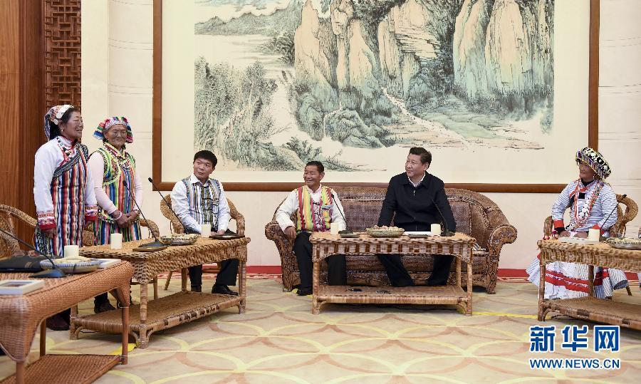 2015年1月20日,习近平在昆明亲切会见怒江州贡山独龙族怒族自治县干部群众代表