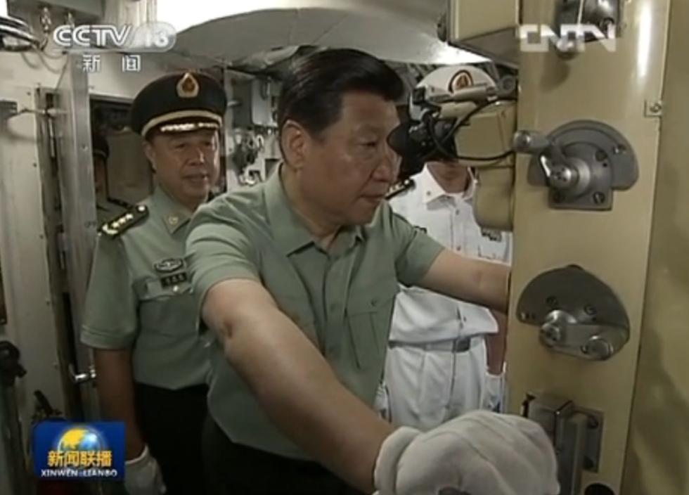 △习近平视察某新型潜艇。