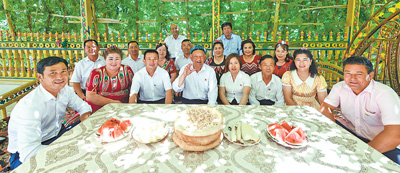 新疆巴音郭楞蒙古自治州尉犁县兴平镇达西村村干部在一起。李 飞摄