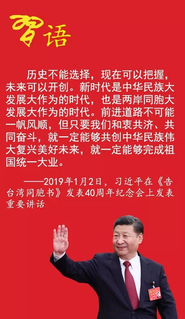 ——2019年1月2日,习近平在《告台湾同胞书》发表40周年纪念会上发表重要讲话时强调
