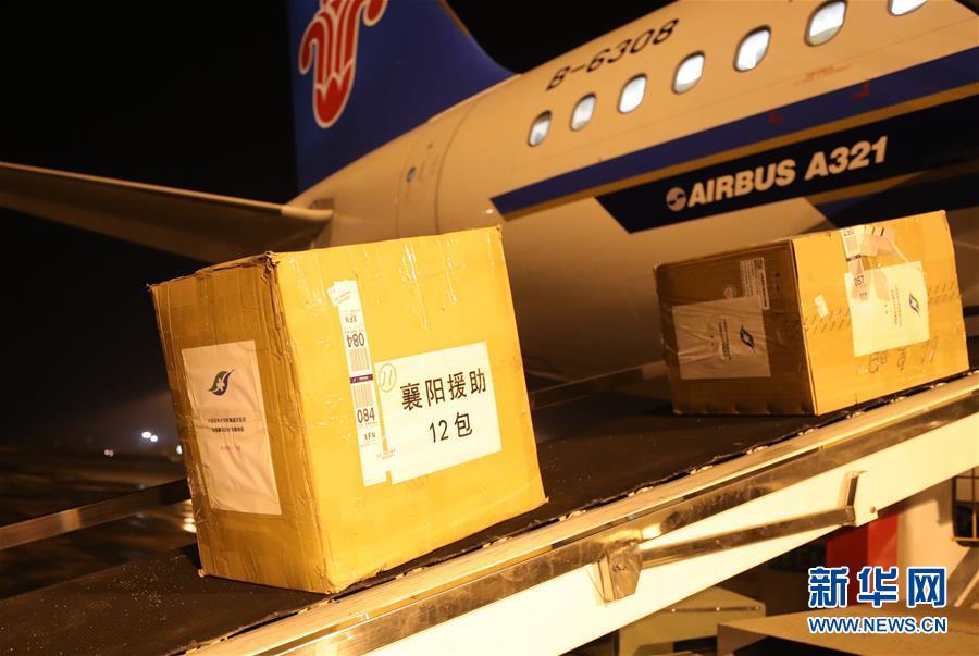 支援湖北襄阳的医疗物资在沈阳桃仙机场被运上飞机(2月12日摄)。新华社记者 杨青 摄