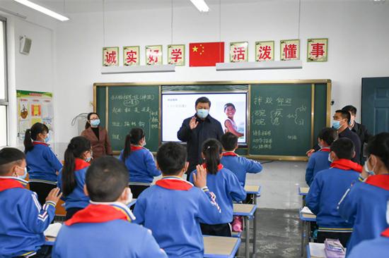 2020年4月21日,习近平总书记在陕西省安康市平利县老县镇中心小学考察。(图片来源:“新华视点”微博)