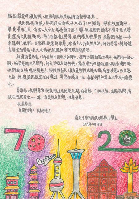 澳门濠江中学附属英才学校小学生的来信(图片来源:人民日报)