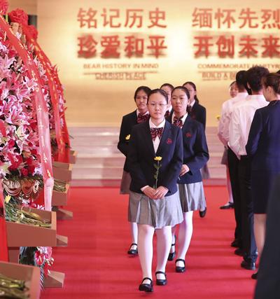 9月3日上午,纪念中国人民抗日战争暨世界反法西斯战争胜利75周年向抗战烈士敬献花篮仪式在中国人民抗日战争纪念馆举行。新华社记者 丁海涛/摄