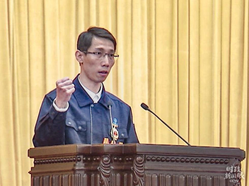 今年获得全国劳动模范称号的洪家光,代表所有受表彰者上台宣读倡议书。