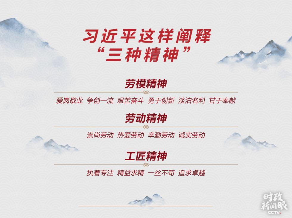 在当天的表彰大会上,习近平总书记发表了重要讲话。他提出四点要求:要大力弘扬劳模精神、劳动精神、工匠精神,要充分发挥工人阶级和广大劳动群众主力军作用,要努力建设高素质劳动大军,要切实实现好、维护好、发展好劳动者合法权益。其中有不少新表述值得关注。