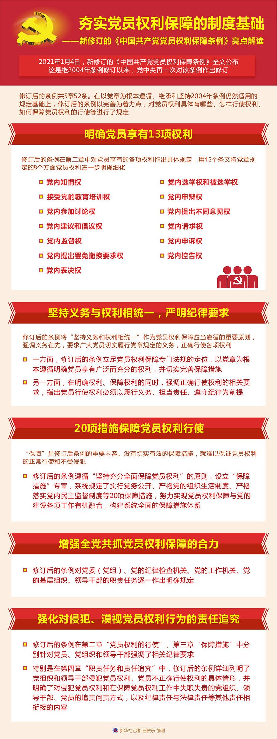 新华社北京1月4日电 题:夯实党员权利保障的制度基础——新修订的《中国共产党党员权利保障条例》亮点解读