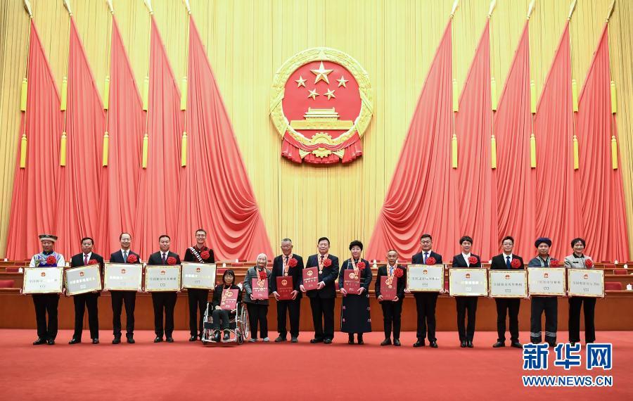2月25日,全国脱贫攻坚总结表彰大会在北京人民大会堂隆重举行。这是参会的全国脱贫攻坚楷模荣誉称号获得者在会后合影留念。新华社记者 谢环驰 摄