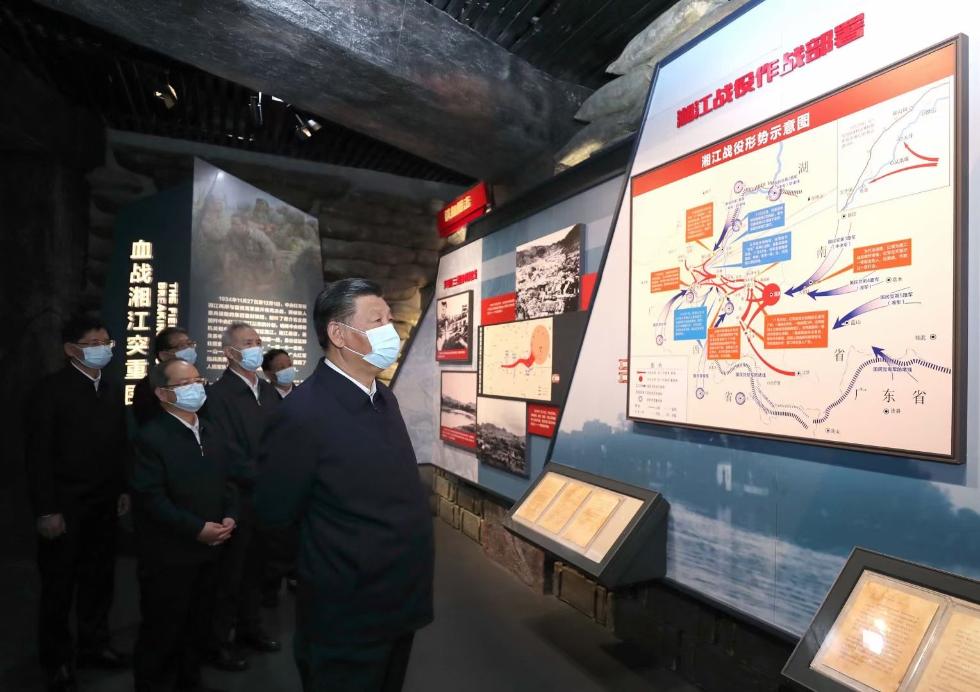 4月25日至27日,中共中央总书记、国家主席、中央军委主席习近平在广西考察。这是25日上午,习近平在桂林市全州县,参观红军长征湘江战役纪念馆。 新华社记者 鞠鹏 摄