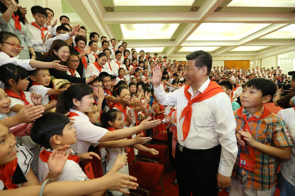 ↑2015年6月1日,习近平在北京人民大会堂亲切会见中国少年先锋队第七次全国代表大会全体代表。