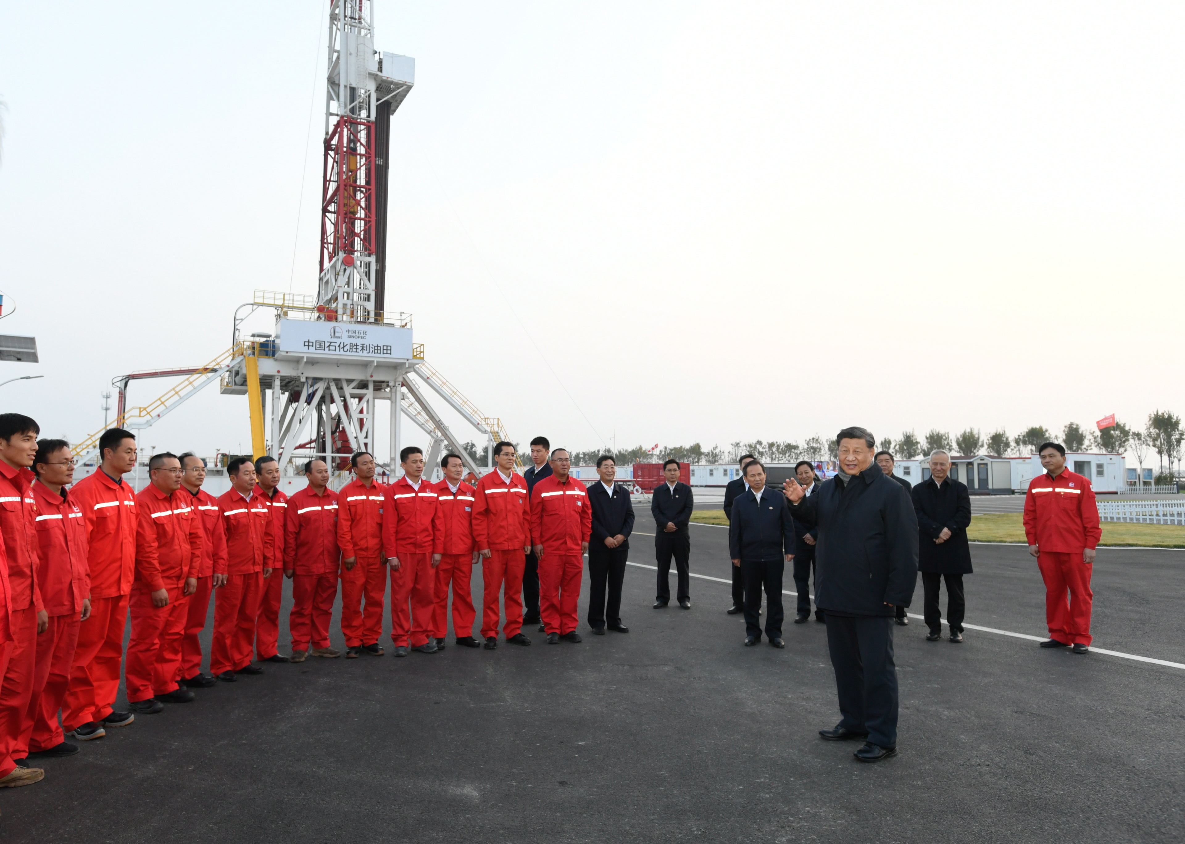 21日下午,习近平总书记来到胜利油田,登上钻井平台,察看作业情况,看望慰问石油工人。今年是胜利油田发现60周年。习近平代表党中央向广大石油职工致以诚挚问候。习近平指出,石油能源建设对我们国家意义重大,中国作为制造业大国,要发展实体经济,能源的饭碗必须端在自己手里。希望你们再创佳绩、再立新功。