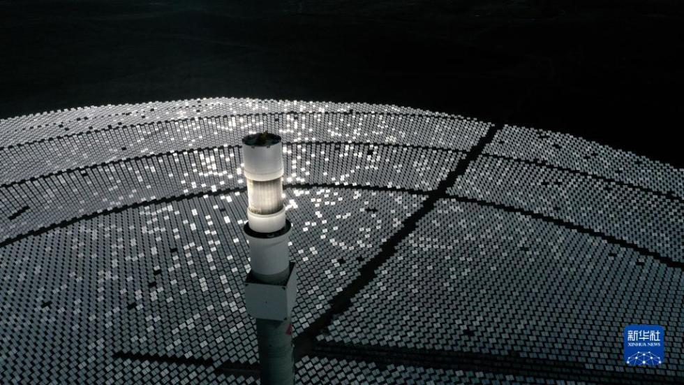 这是位于青海省海南藏族自治州共和县光伏产业园内一处塔式光热发电项目(3月3日摄,无人机照片)。新华社记者 张宏祥 摄
