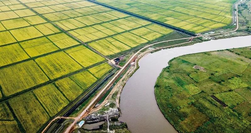 消除贫困是人类面临的共同挑战。中国通过“一带一路”倡议帮助沿线各国增加就业、改善民生,以实际行动为推进全球减贫事业作出贡献。根据世界银行研究报告,“一带一路”倡议将使相关国家约760万人摆脱极端贫困、3200万人摆脱中度贫困。图为2019年4月7日无人机拍摄的莫桑比克中非农业合作项目——万宝莫桑农业园的水稻田,该项目极大地缓解了莫桑比克粮食短缺问题。 新华社记者 张宇/摄