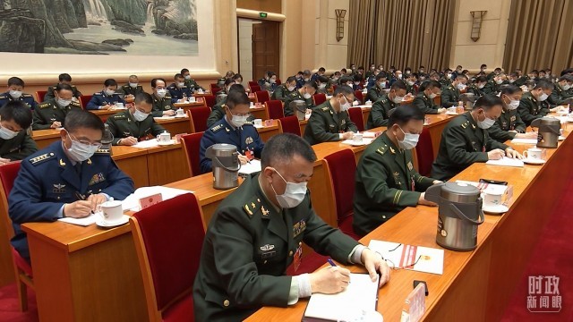 △2022年3月7日,解放军和武警部队代表团全体会议现场。