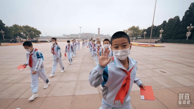 △北京市中小学生代表走入会场。(总台央视记者 彭汉明拍摄)