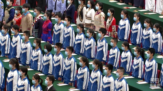 △共青团中央书记处第一书记贺军科在大会上发言。(总台央视记者 张晓鹏拍摄)