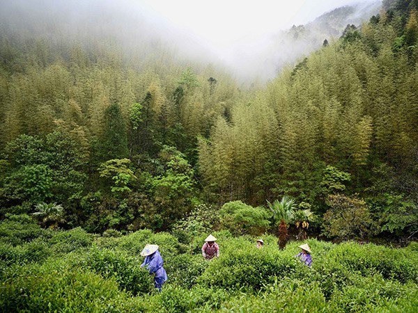 2022年5月10日,福建武夷山市桐木村工人在采茶。(新华社发)