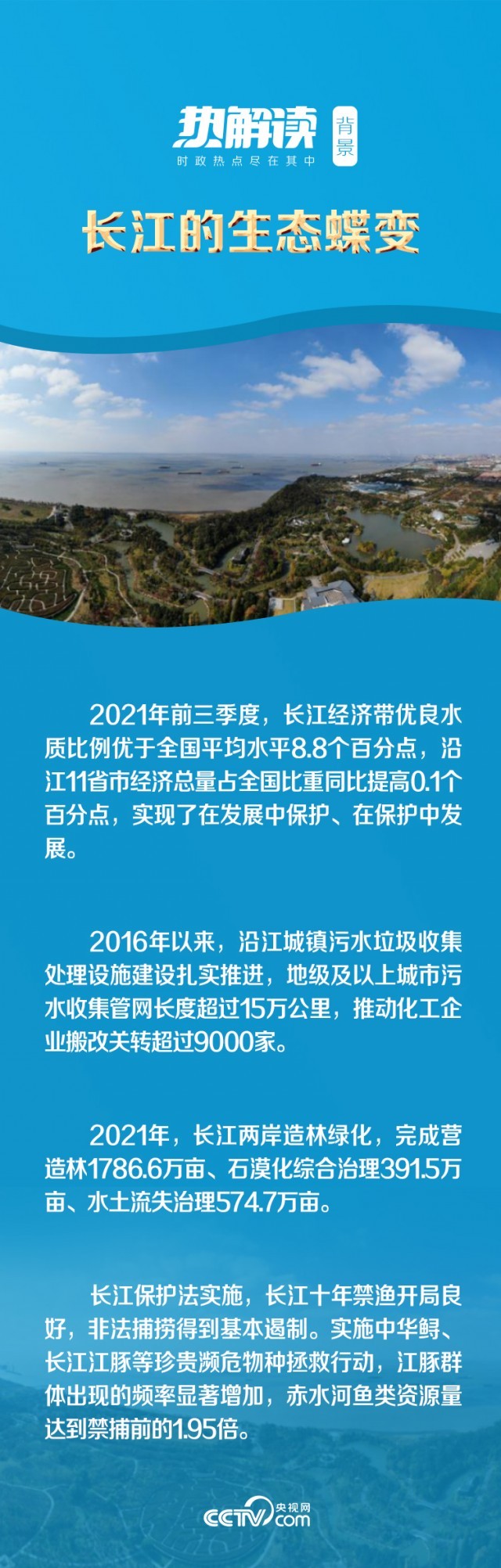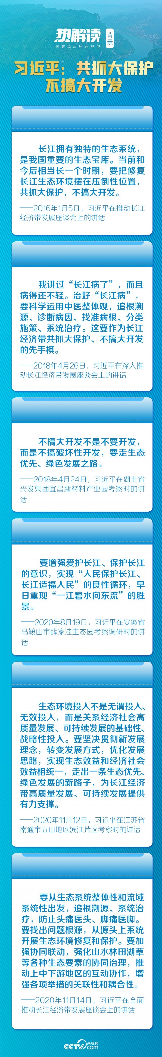 在这次会议上,总书记明确提出“共抓大保护,不搞大开发”,清晰勾画了推动长江经济带“生态优先、绿色发展”的宏伟蓝图。