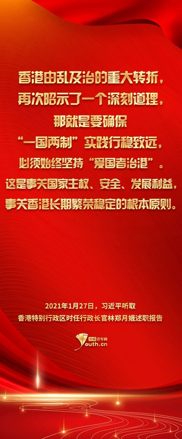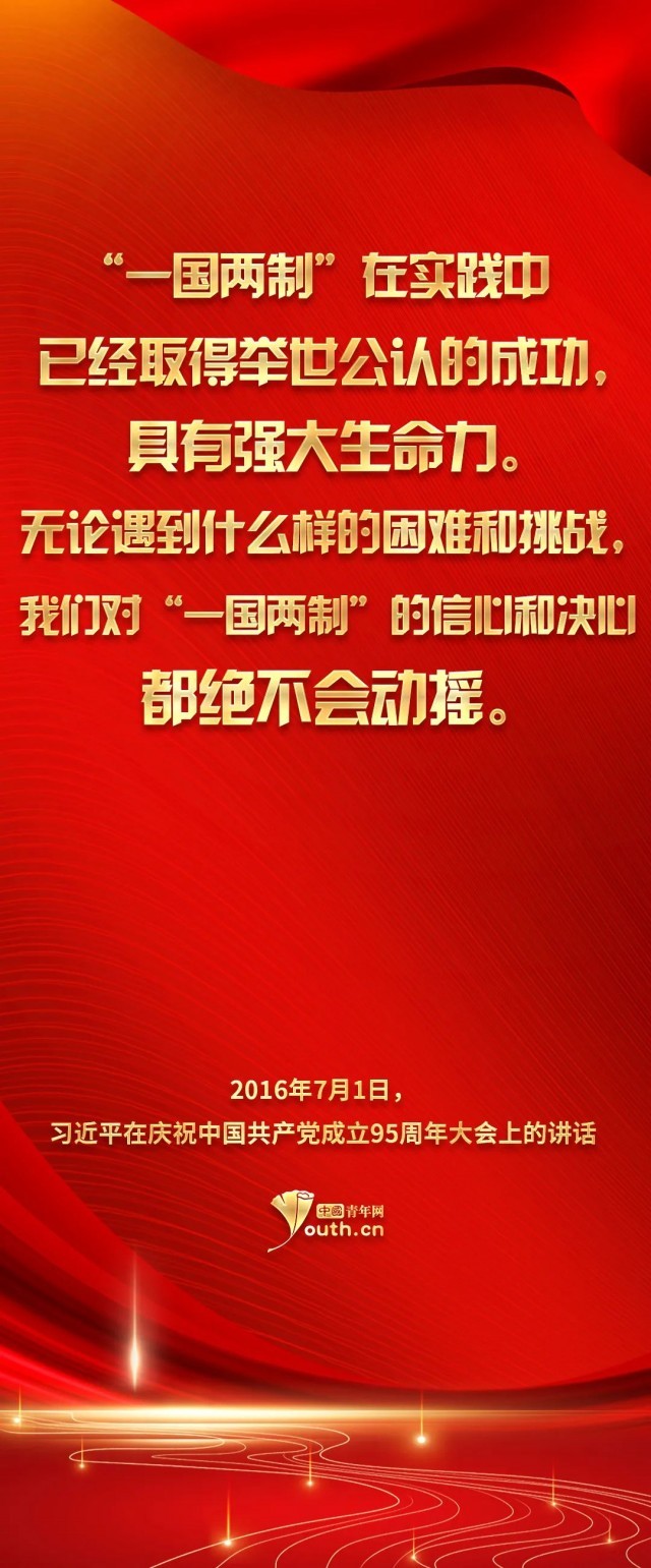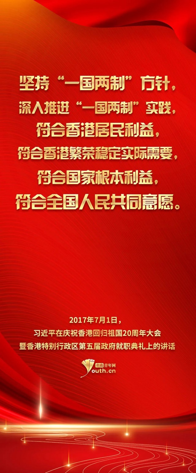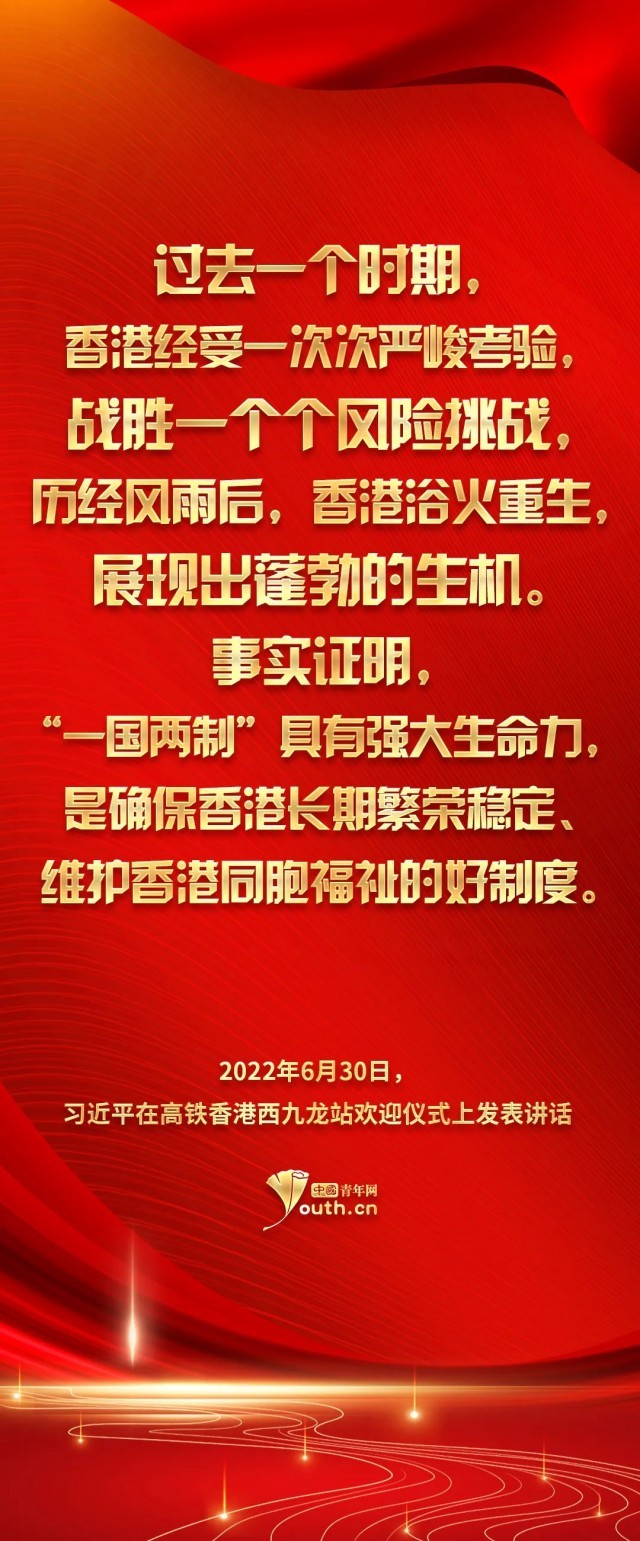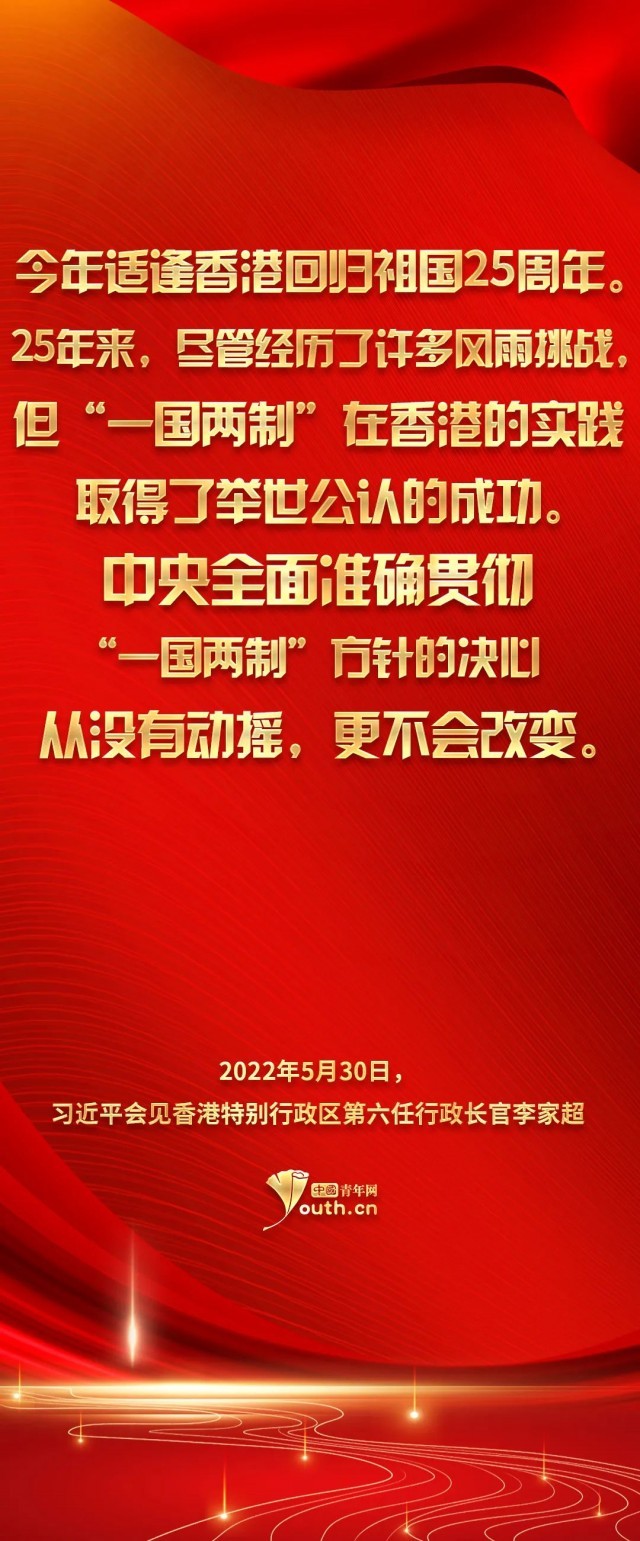 “这样的好制度,没有任何理由改变,必须长期坚持!”掷地有声的话语,为香港擘画了长远的发展蓝图。我们坚信,有伟大祖国作为坚强后盾,有中央政府和内地人民的大力支持,有回归25年积累的丰富经验和夯实的发展基础,有香港特别行政区政府和社会各界人士的团结奋斗,“一国两制”在香港将不断写下生机勃勃的篇章,香港的明天一定会更美好!(中国青年网评论员)